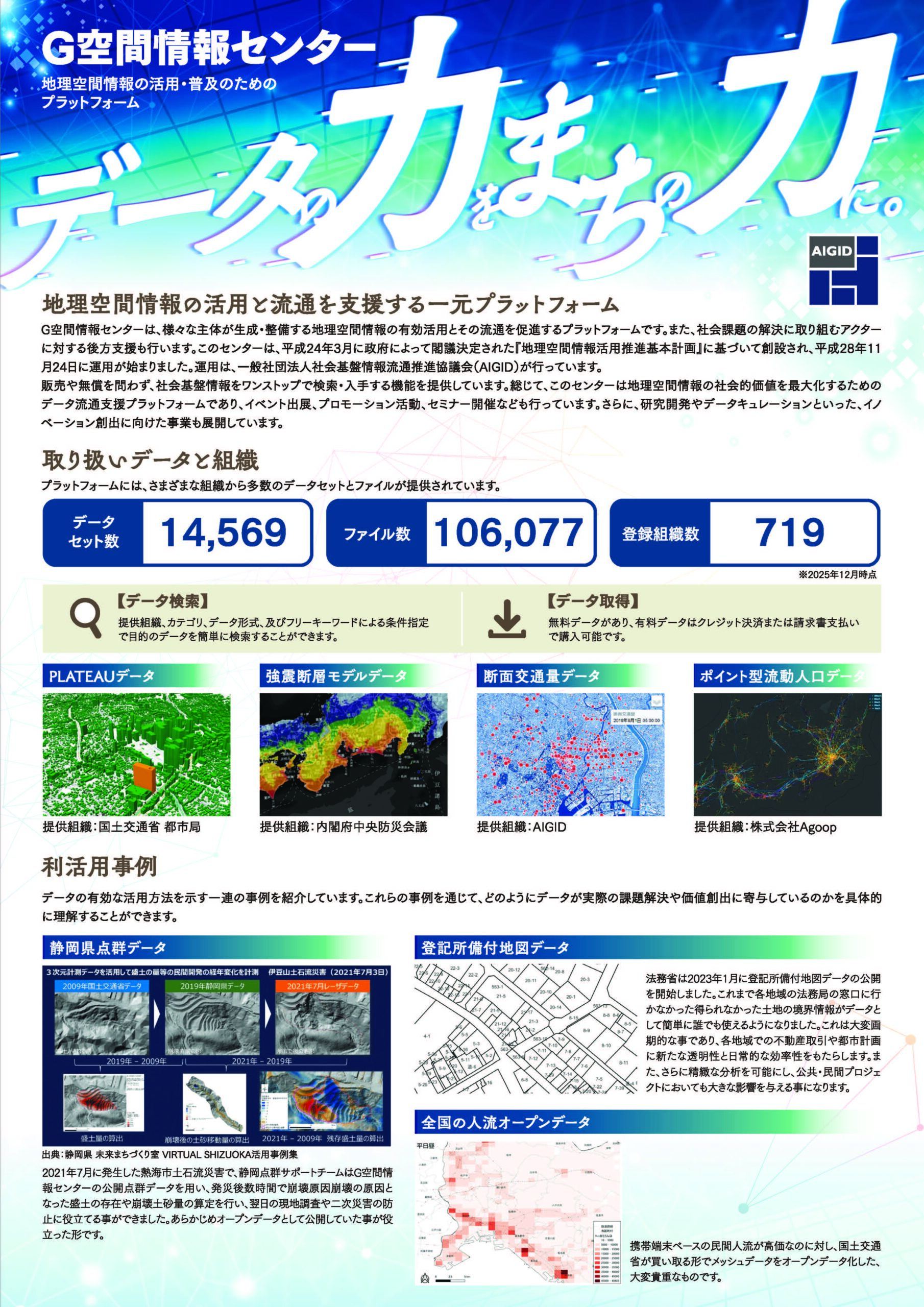 また、当初の目標であるサステイナブルな社会基盤情報の流通環境整備を更に推し進めるべく、平成26年4月より一般社団法人として活動をリ・スタートすることになりました。